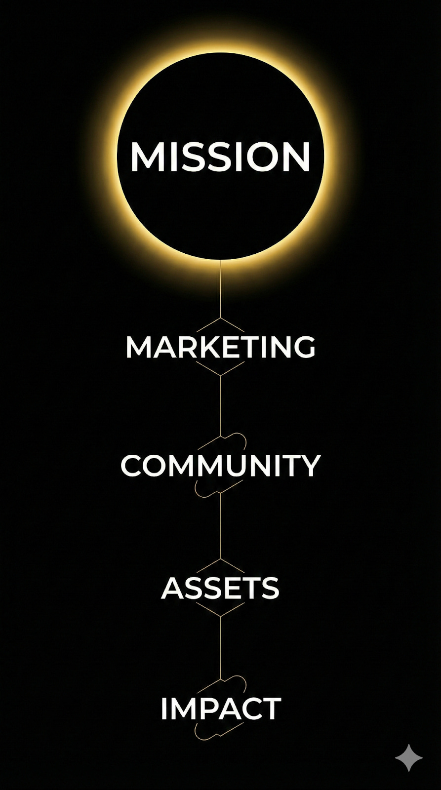 Marketing is how you share that mission with the world — consistently, strategically, in ways that build recognition over time. Community is the network of relationships that carry your message further than you could alone. Assets are the tangible products of your mission — the frameworks, tools, and resources that create value even when you’re not in the room. Impact is the proof that your work creates real change.